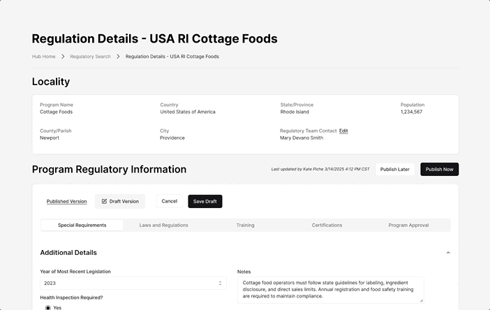Streamlined complex laws, certifications, and requirements into a clear, searchable interface. Enabled internal users to quickly find and act on the information they need.